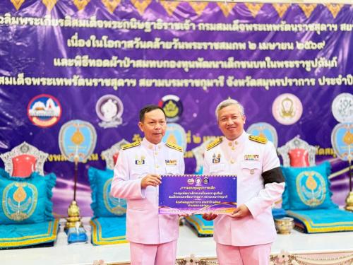 อำเภอบางเสาธง เข้าร่วมการจัดกิจกรรมเฉลิมพระเกียรติสมเด็จพระกนิษฐาธิราชเจ้า กรมสมเด็จพระเทพรัตนราชสุดาฯ สยามบรมราชกุมารี เนื่องในวันคล้ายวันพระราชสมภพ 2 เมษายน และการทอดผ้าป่ากองทุนพัฒนาเด็กชนบทฯ จังหวัดสมุทรปราการ ประจำปี 2569